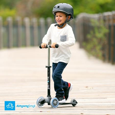 Teraz gdy pojawiła się wersja Mini Micro Deluxe o regulowanej wysokości drążka będzie wygodniej również niższemu AktywnemySmykowi jeździć na tej kultowej hulajnodze. Dlatego polecamy hulajnogę Mini Micro Deluxe, w szczególności, AktywnemuSmykowi o wzroście poniżej 90 cm.