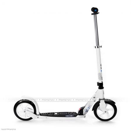 Elegancka śnieżno-biała hulajnoga Micro White to szybki, wygodny i ekologiczny środek transportu dla Aktywnego Starszaka lub Aktywnego Rodzica do wagi 100 kg. Hulajnoga świetnie nada się do gonienia pociechy śmigającej na np. hulajnodze Mini Micro, Maxi Micro lub większej Micro. Micro White to również doskonały, nie stojący w korkach środek lokomocji do pracy, sklepu, autobusu lub z dzieckiem do przedszkola czy szkoły. Hulajnoga występuje również w kruczoczarnej wersji Micro Black :-)