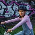 Dzięki zabudowanej i zaokrąglonej tylnej ściance kasku dziecko ma dobrze chronioną potylicę.